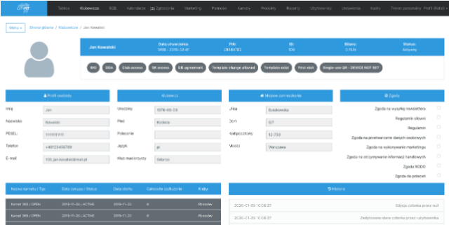 System powstał w 2016 i od tamtej pory jest stale rozwijany. Obecnie oprócz funkcji CRM system realizuje również sprzedaż on-line, zarządzanie treningami, posiada rozbudowany system raportowania oraz aplikacje mobilną. System jest utrzymywany z SLA 99.95%.